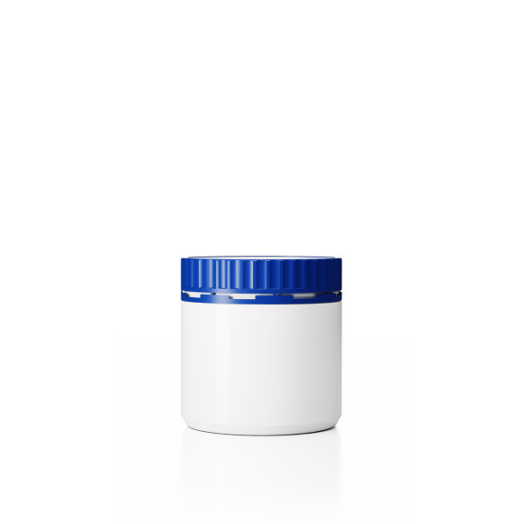 Dóza DL-M 100/100_600 a Uzávěr DL-MZ ø100mm Plastová dóza HDPE, objem 600ml, barva dózy bílá a barva uzávěru modrá