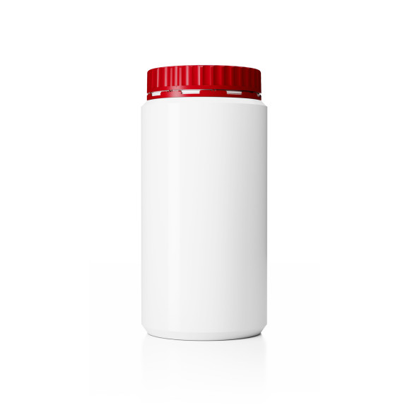 Dóza DL-M 100/91_1400 a Uzávěr DL-MZ ø 91 mm Plastová dóza HDPE, objem 1400ml, barva dózy bílá a barva uzávěru červená