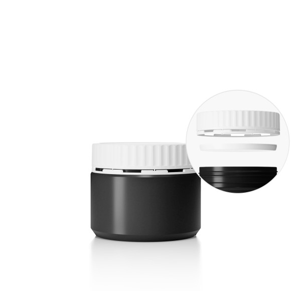 Dóza DL-M 124/121_1000 a Uzávěr DL-MZ ø124mm vč. mezivíka Plastová dóza HDPE, objem 1000ml, barva dózy černá a barva uzávěru bílá