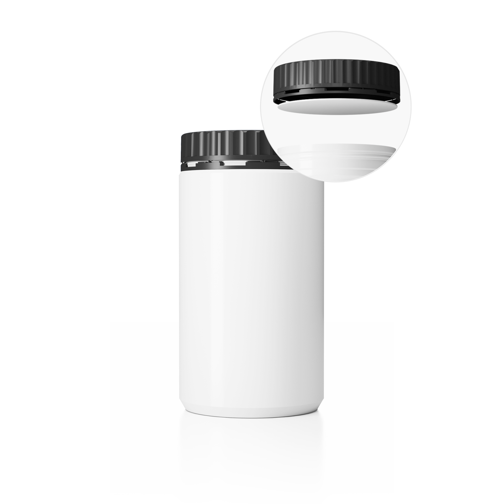 Dóza DL-M 94/91_1000 a Uzávěr DL-MZ ø 91 mm vč.těsnění Plastová dóza HDPE, objem 1000ml, barva dózy bílá a barva uzávěru černé