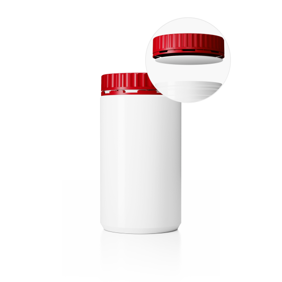 Dóza DL-M 94/91_1000 a Uzávěr DL-MZ ø 91 mm vč. těsnění Plastová dóza HDPE, objem 1000ml, barva dózy bílá a barva uzávěru červená