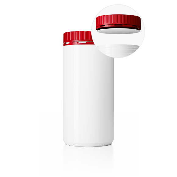 Dóza DL-M 94/91_1200 a Uzávěr DL-MZ ø 91 mm vč. těsnění Plastová dóza HDPE, objem 1200ml, barva dózy bílá a barva uzávěru červená