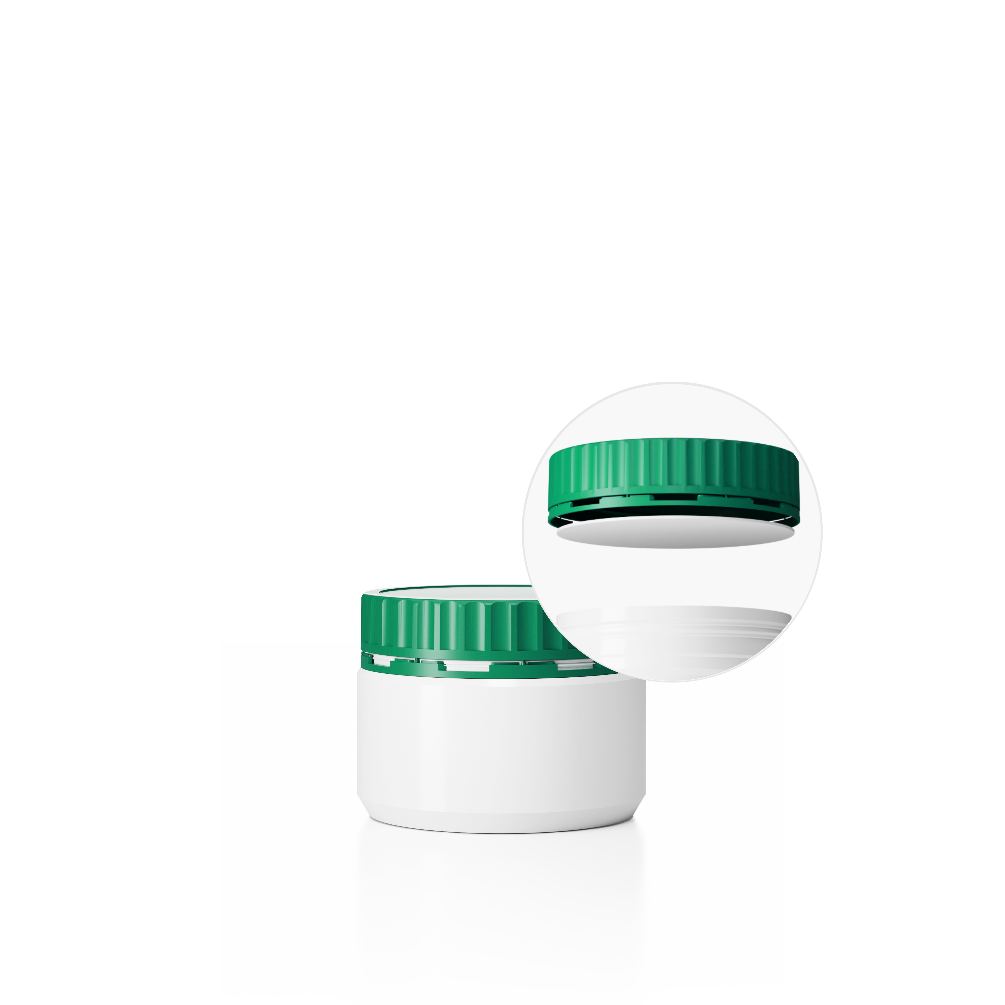 Dóza DL-M 94/91_300 a Uzávěr DL-MZ ø 91 mm vč. těsnění Plastová dóza HDPE, objem 300ml, barva dózy bílá a barva uzávěru zelená