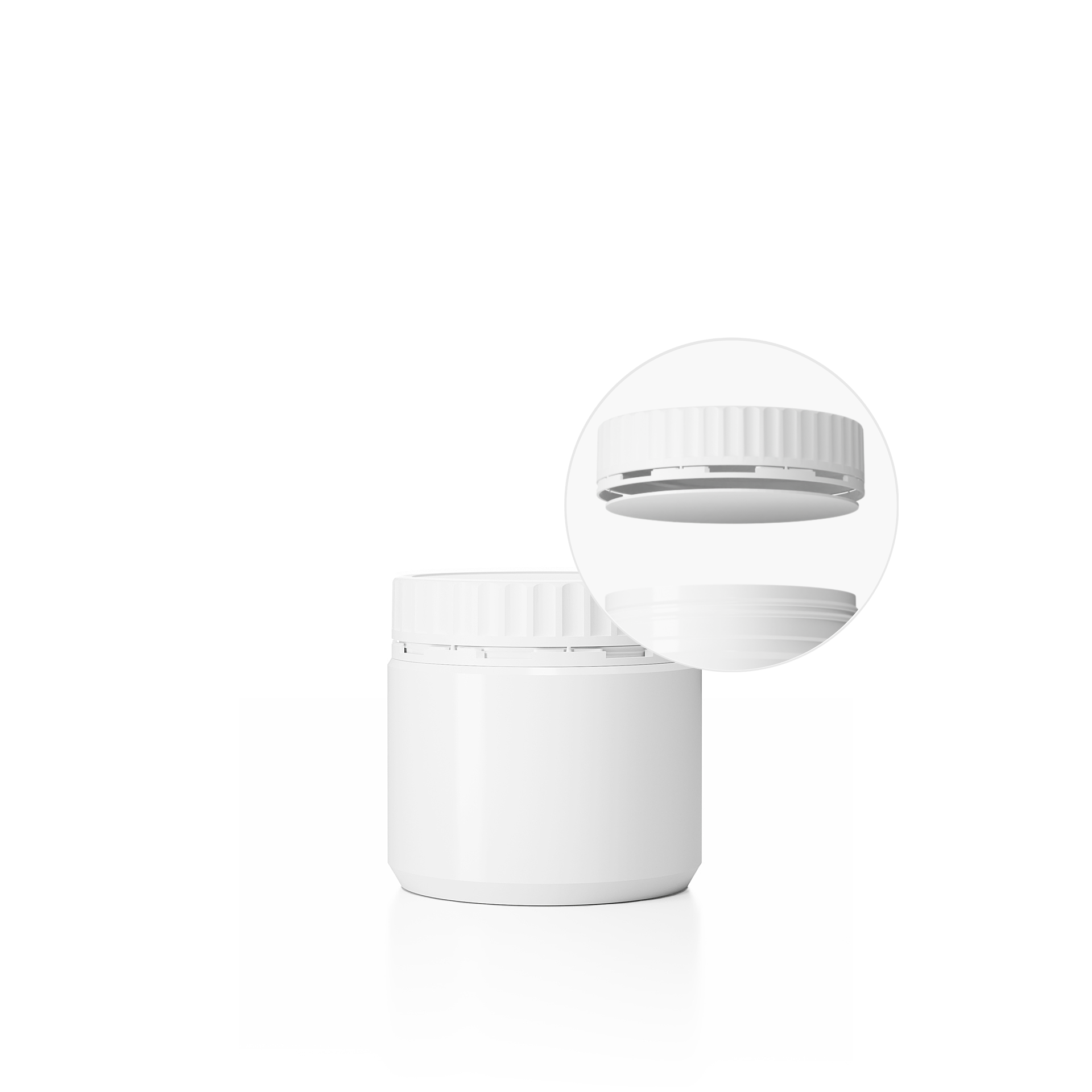 Dóza DL-M 94/91_500 a Uzávěr DL-MZ ø 91 mm vč. těsnění Plastová dóza HDPE, objem 500ml, barva dózy bílá a barva uzávěru bílá
