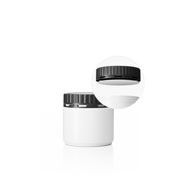 Dóza DL-M 94/91_500 a Uzávěr DL-MZ ø 91 mm vč.těsnění Plastová dóza HDPE, objem 500ml, barva dózy bílá a barva uzávěru černé