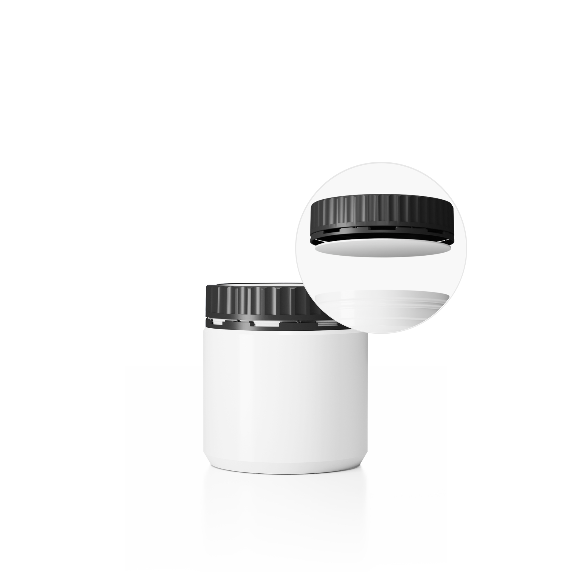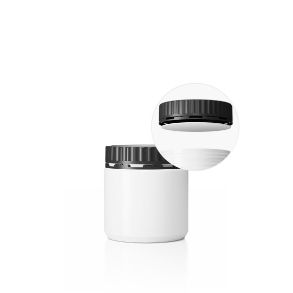 Dóza DL-M 94/91_600 a Uzávěr DL-MZ ø 91 mm vč.těsnění Plastová dóza HDPE, objem 600ml, barva dózy bílá a barva uzávěru černé