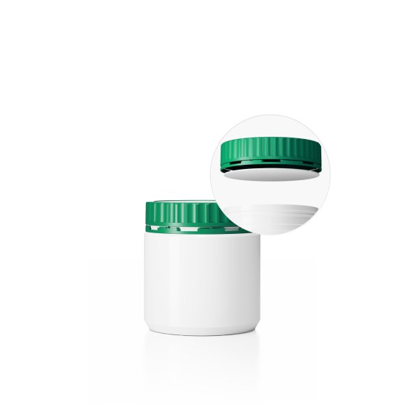 Dóza DL-M 94/91_600 a Uzávěr DL-MZ ø 91 mm vč. těsnění Plastová dóza HDPE, objem 600ml, barva dózy bílá a barva uzávěru zelená