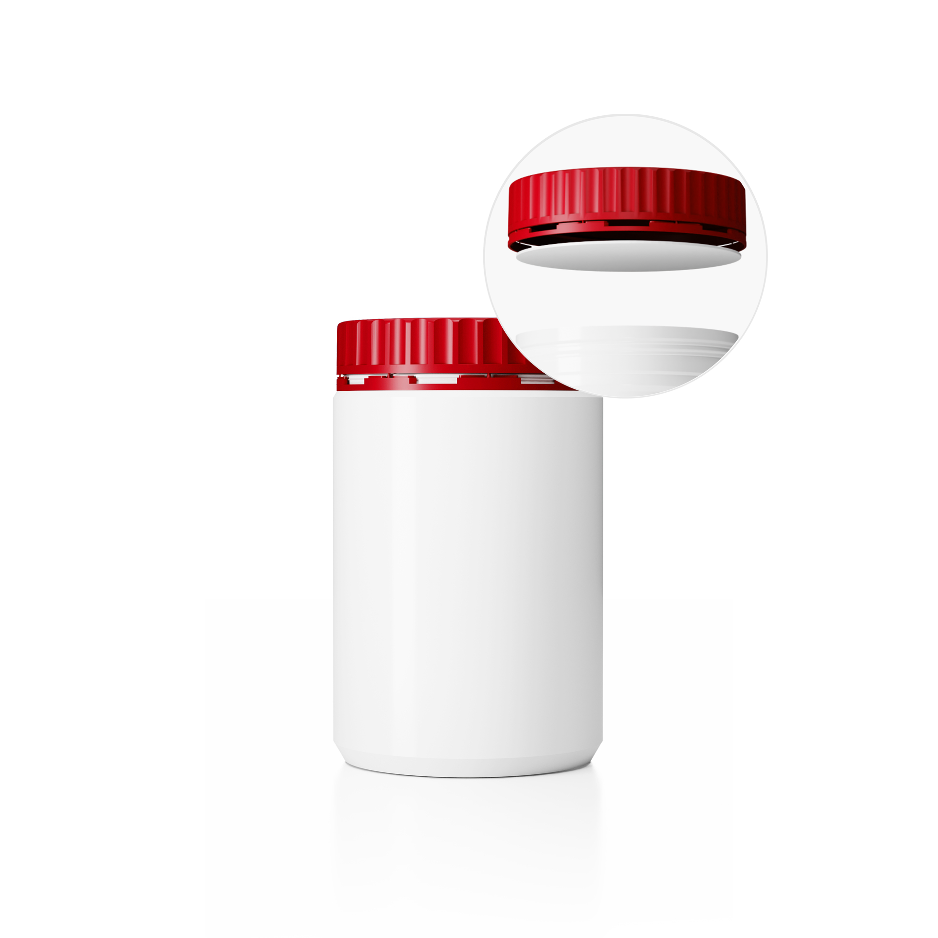 Dóza DL-M 94/91_800 a Uzávěr DL-MZ ø 91 mm vč. těsnění Plastová dóza HDPE, objem 800ml, barva dózy bílá a barva uzávěru červená
