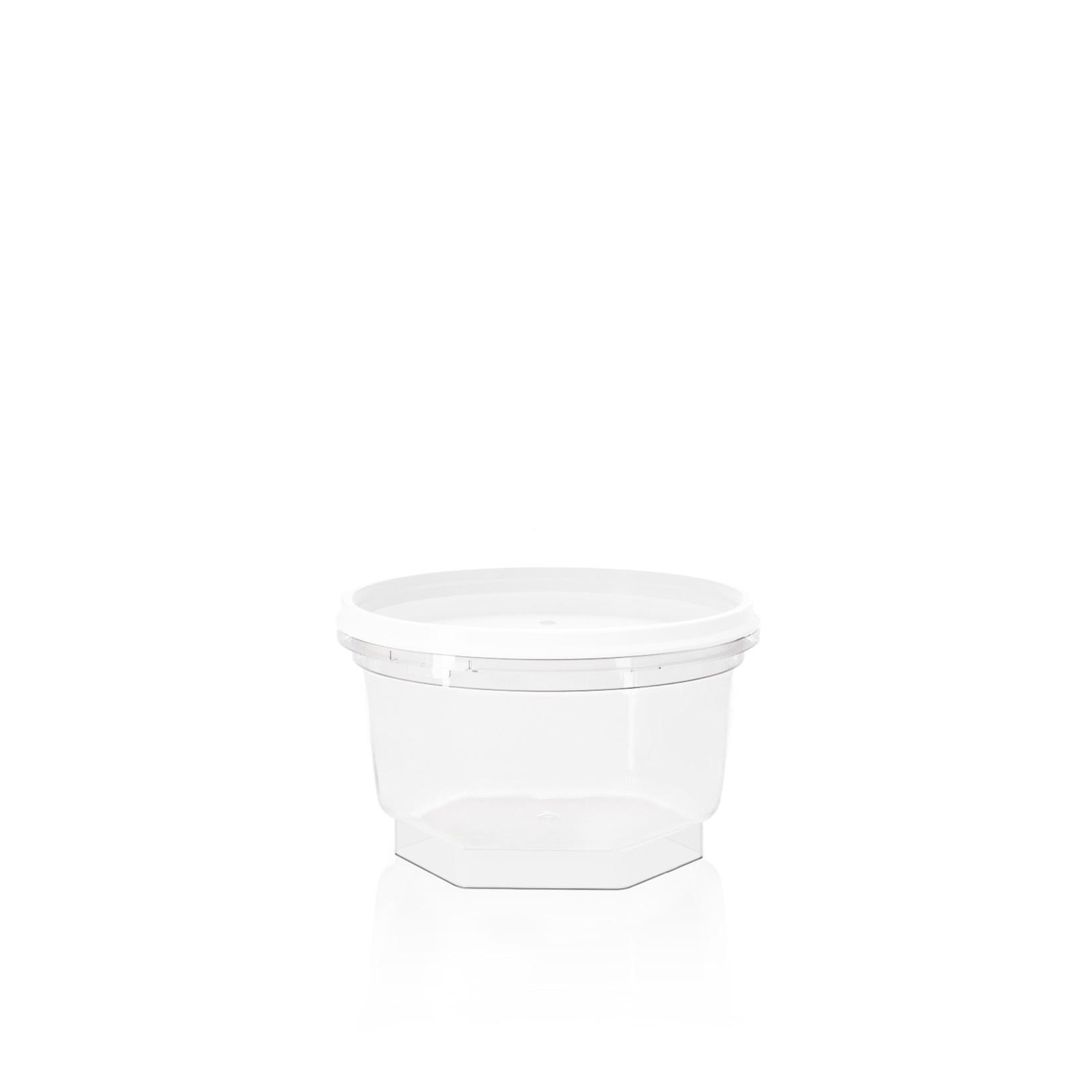 Kulatý kelímek s hranatým dnem DL 003_200 a Víčko kulaté DL001-DL003 bílé transparentní barva, objem 200 ml, a bílé víčko